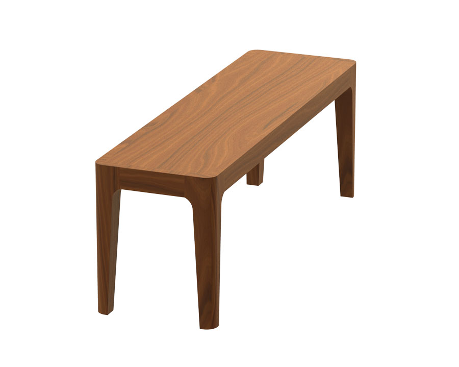 Bench’s frame and seat are made from stained solid teak.