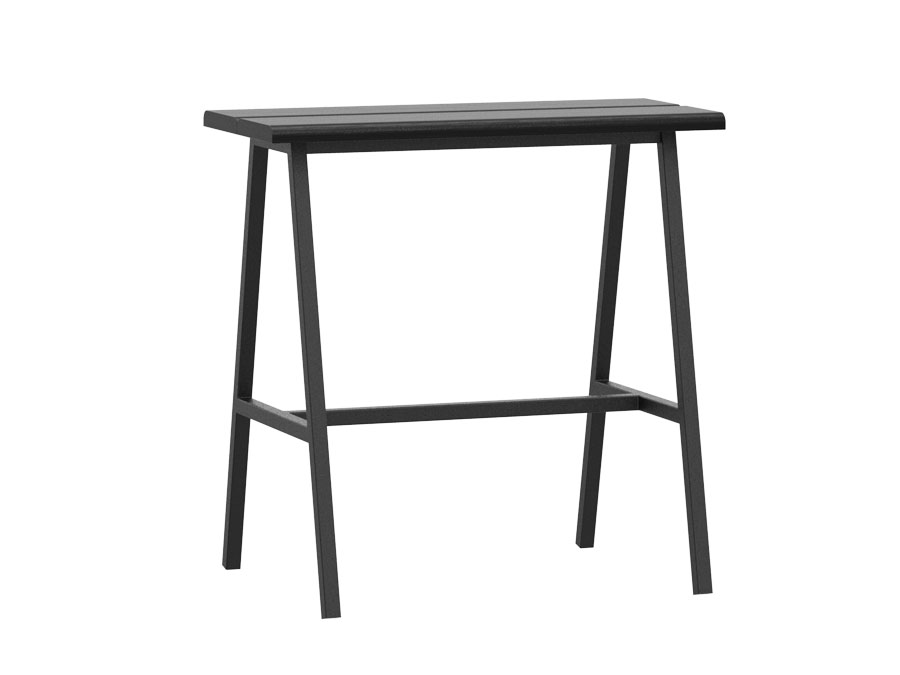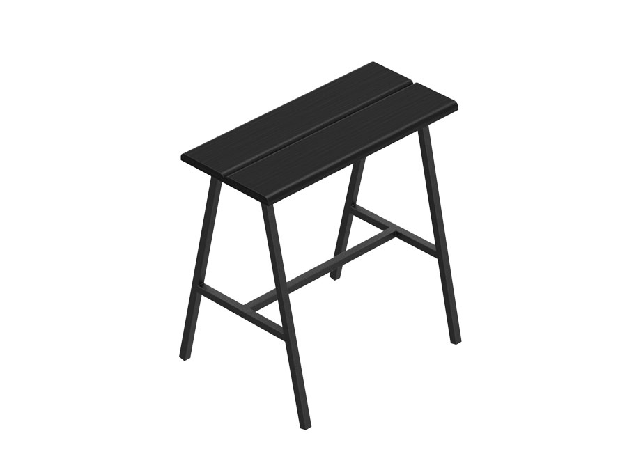 The seat is made of natural or stained solid teak. Legs in powder coated steel tube.