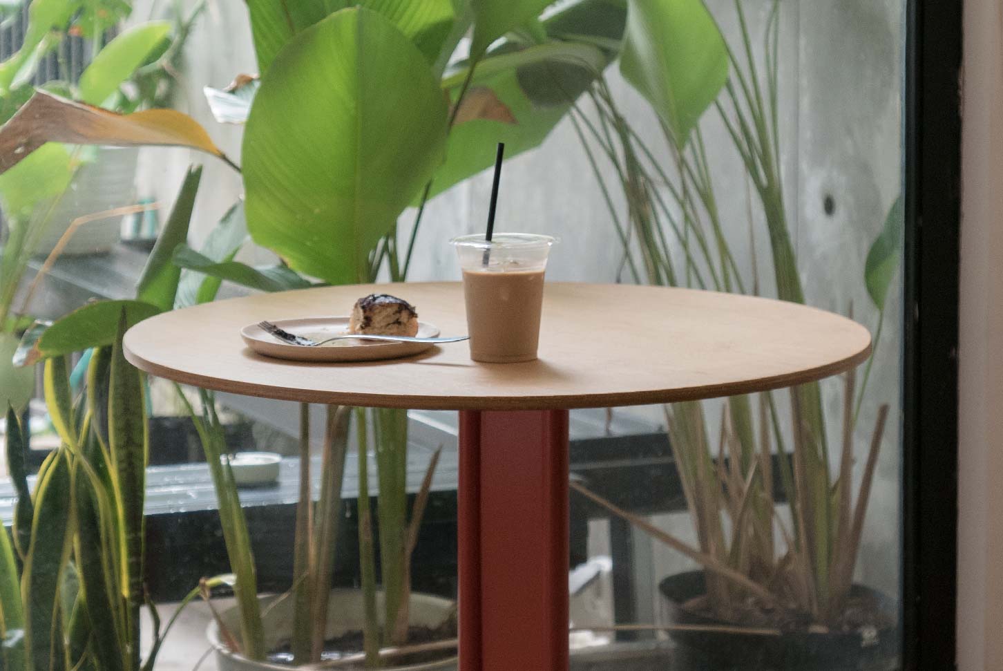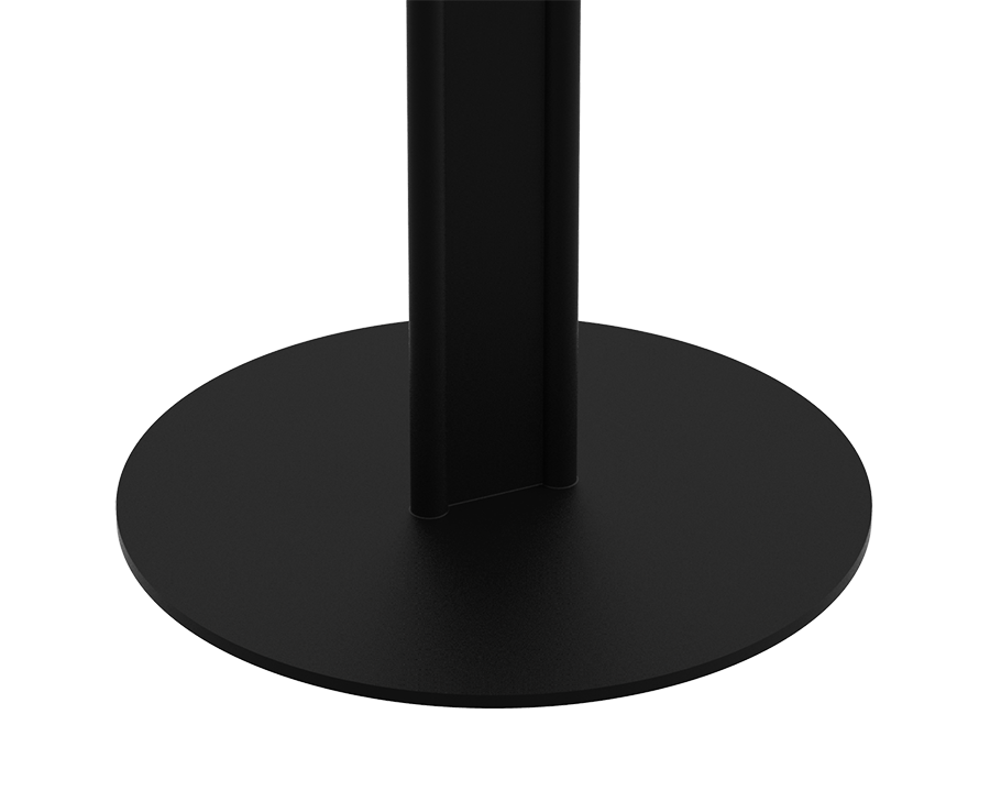 PLATOU bistro table constructed with two tubular bases standing with a rectangular plate in between and a tapered round table top. With its clean lines and simple detail, yet sturdy and authentic material, this table serves perfectly for various café, bistro or restaurant spaces.